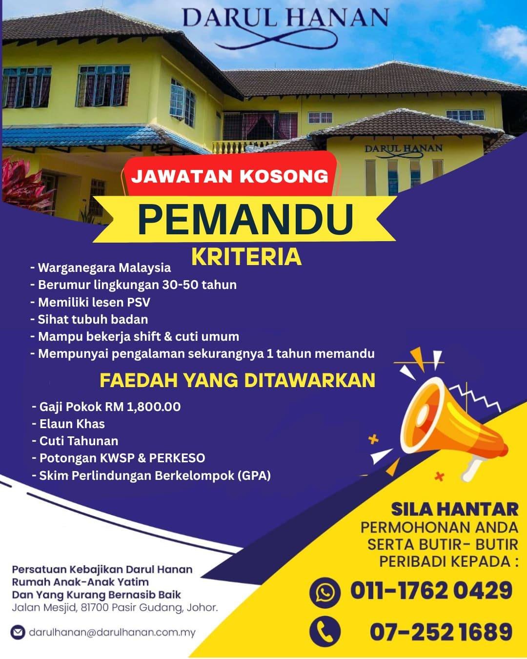 Jawatan kosong pemandu diperlukan segera